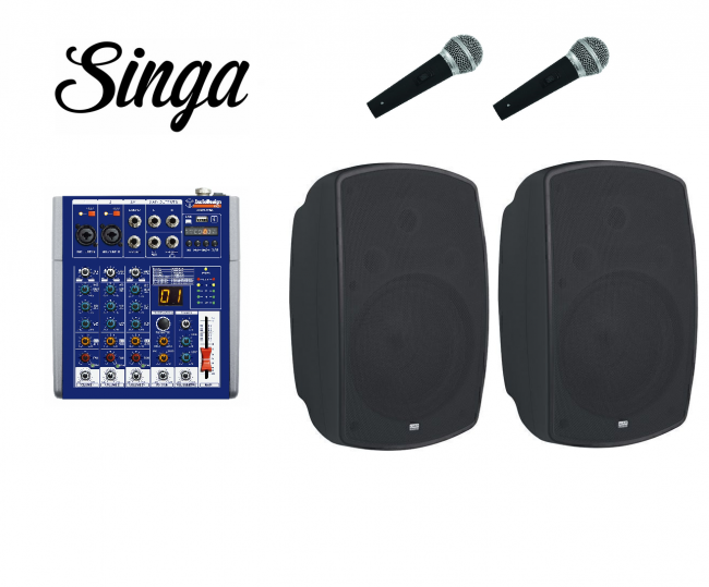 Helppokäyttöinen karaokepaketti jossa kaksi laadukasta mikkiä, tyylikkäät ja hyväsoundiset kaiuttimet, monipuolinen helppokäyttöinen mikseri ja Singa karaokepalvelu jossa yli 80 000 kappaletta. Lisää ostoskoriin uusi karaokepakettisi tai tilaa vaikka lahjaksi! Tämä paketti sopii alkajille ja pitkään laulaneille.