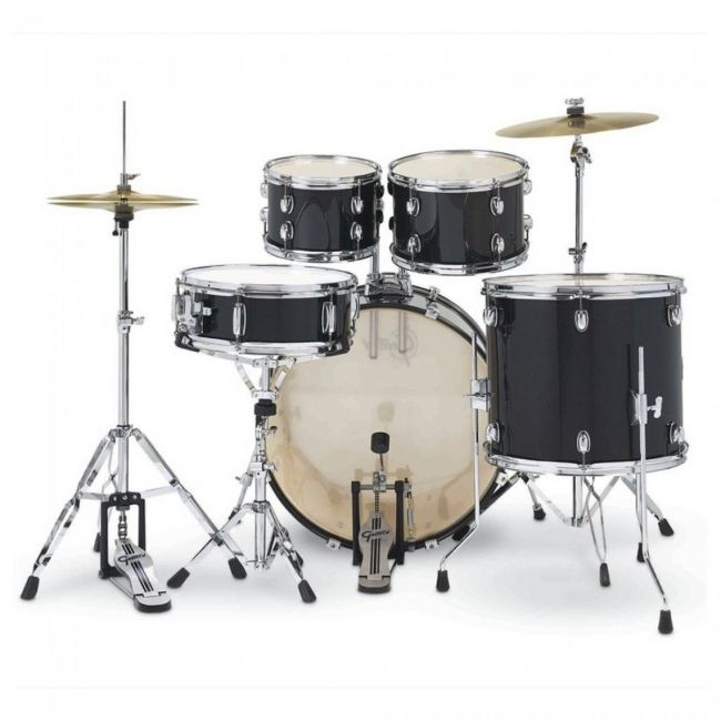 sisältää 5-osaiset rummut, symbaalitelineet ja symbaalit (Hihat ja Crash/Ride), bassorummun pedaalin ja rumpujakkaran, siis kaiken tarvittavan.
