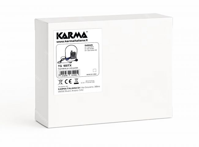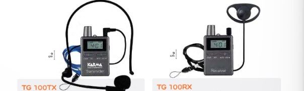 Karma TG-100 opasjärjestelmä on erinomainen valinta, kun tarvitset varman ja joustavan tavan välittää puhetta usealle kuuntelijalle samanaikaisesti. Paketissa mukana yksi lähetin (puhujalle) ja yksi vastaanotin ja korvanappi kuulijalle. Vetovalikosta tai verkkokaupastamme voit ostaa vastaanottimia lisää rajattoman määrän sillä laite tukee rajattoman määrän vastaanottimia kerralla.