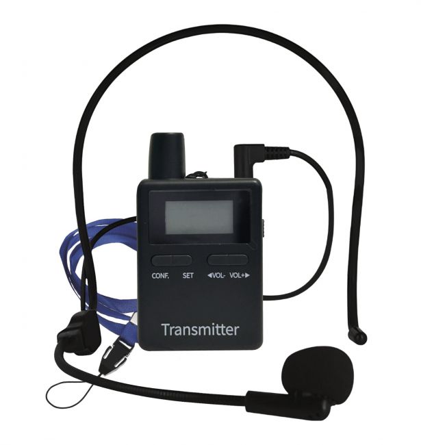 1 x lähetin (oppaalle tai puhujalle)1 x vastaanotin ja kuuloke (kuuntelijalle)