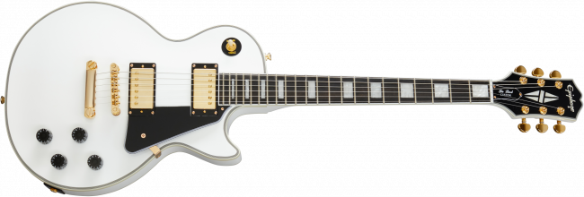 The new Les Paul Custom is part of Epiphone’s Inspired by Gibson Collection and honors the 1950s classic designed by Mr. Les Paul in 1954 as the “tuxedo” version of his groundbreaking solid body masterpiece. Featuring a traditional Custom-style Mahogany body and Ebony fingerboard, gold hardware, critically acclaimed ProBucker™ humbuckers with CTS electronics, Grover® machine heads, and Custom-style inlay.