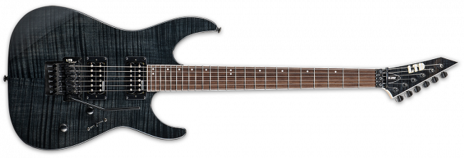 With the M-200, guitar players who are ready to shred have a truly affordable, high-quality guitar. The classic flat “slab” body of the M Series is offered here in mahogany, with a maple neck and roasted jatoba fingerboard with 24 extra-jumbo frets. These speedy bolt-on models with extra thin flat maple necks are being offered in Black and Neon Pink finishes, or with a flamed maple top in the M-200FM in See Thru Red and See Thru black finishes. All of them feature an LTD by Floyd Rose tremolo and powerful, punchy ESP Designed pickups.